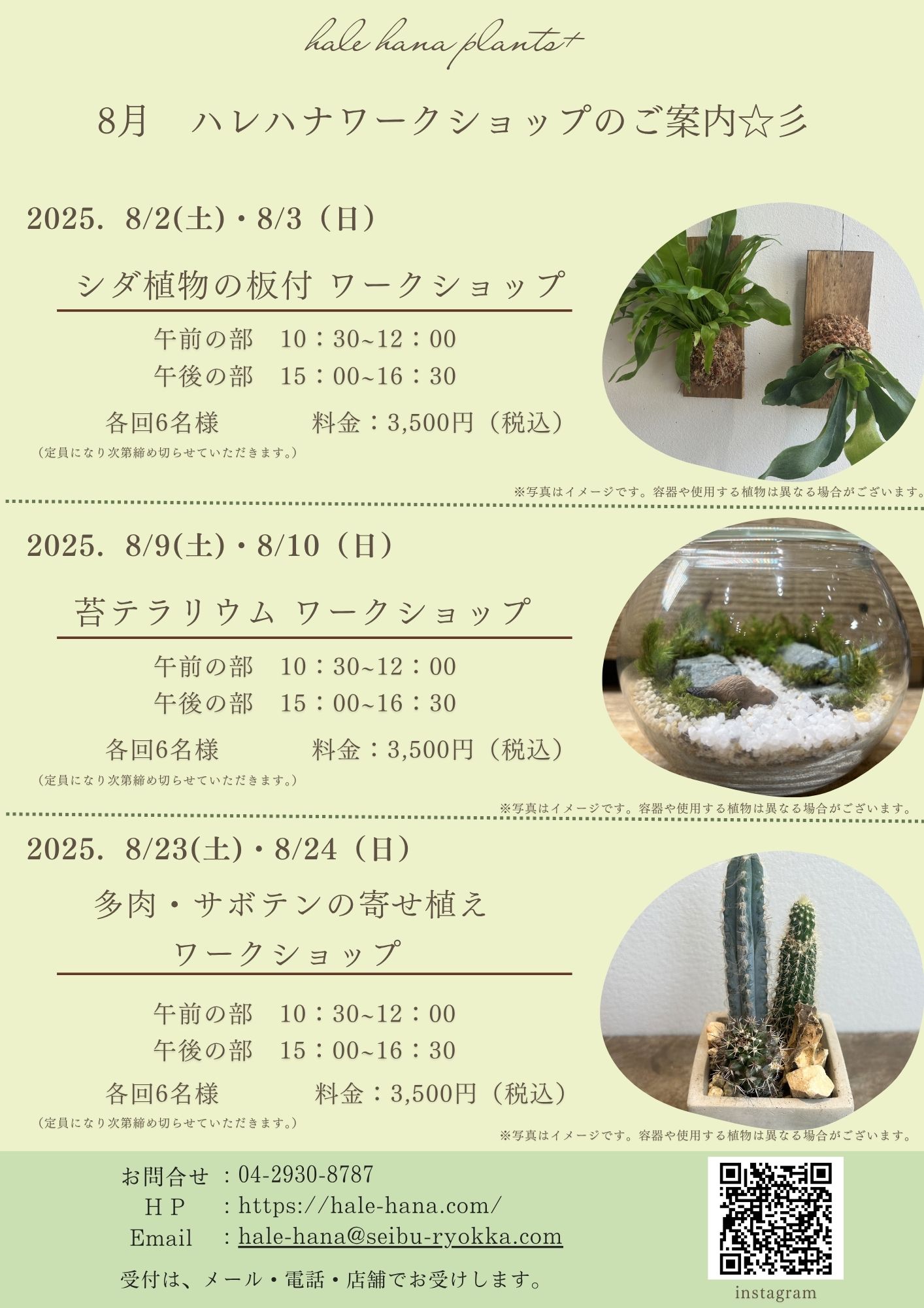 ハレハナ 8月のワークショップ開催のご案内