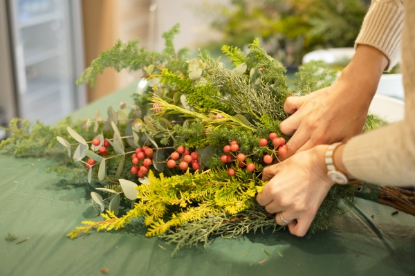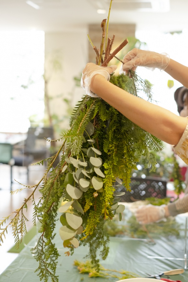 2020/12/08 第2回ワークショップ作品紹介 Event Workshop 2020年12月25日(土)に第2回ハレハナ・ワークショップ「フレッシュもみの木をつかった、クリスマススワッグ」 を開催しました。たくさんのご参加、誠ににありがとうございました。 ワークショップ中はもみの木やユーカリなどの良い香りでいっぱいでした。みなさんの作品の一部をご紹介いたします こうして並べてみると、同じ材料を使っていても、ひとつひとつ個性が出ていておもしろいですね。今後も魅力的なワークショップを企画していきたいと思っています。 « prev next »