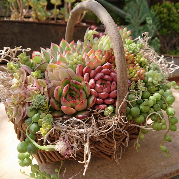 Instagramフォロワー数26,000人、大人気のKurumi Succulentsさんに、新鮮で色あざやかな苗とおしゃれなバスケットをご用意いただき、春にふさわしいすてきな寄せ植えを制作します。