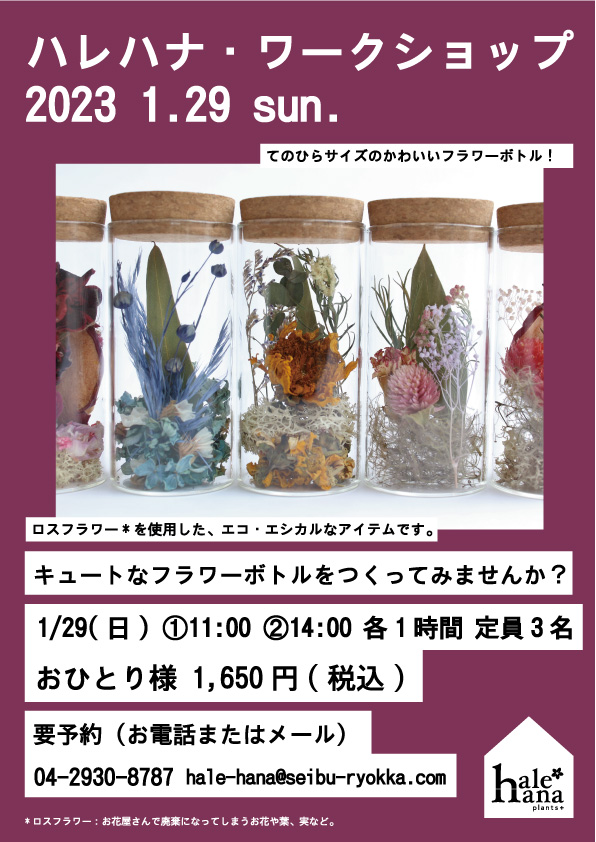 2023年1月「ワークショップのお知らせ」 ―フラワーボトル―