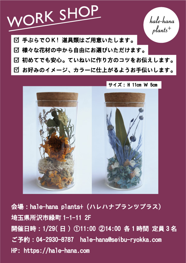 会場:hale-hana plants+(ハレハナプランツプラス)埼玉県所沢市緑町1-1-11 2F