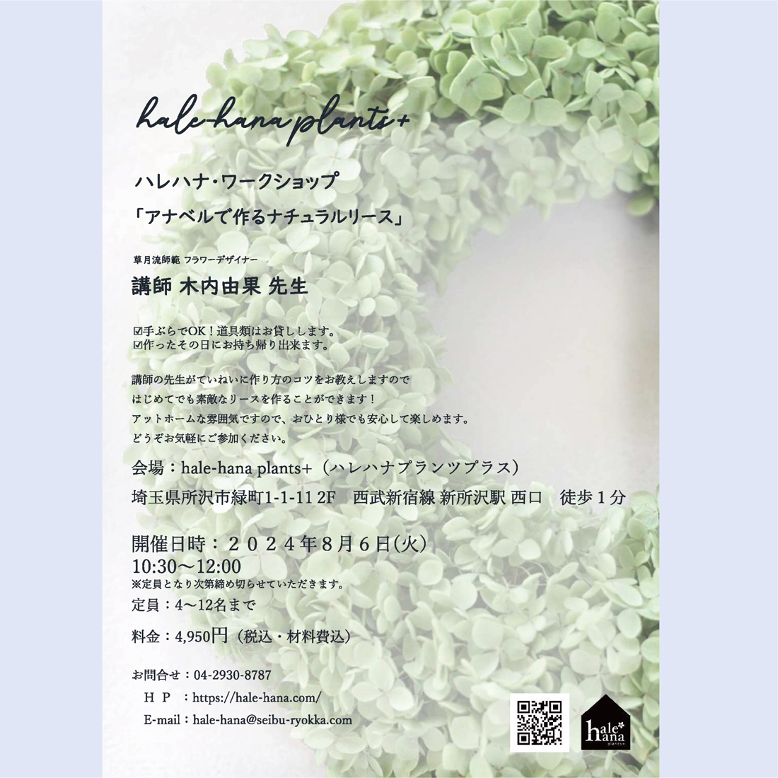 H P :https://hale-hana.donati.jp/ E-mail:hale-hana@seibu-ryokka.com