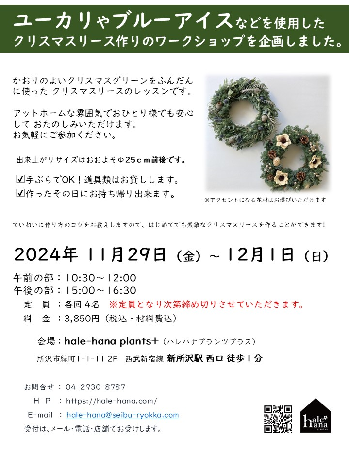 【森の香りただよう本物のクリスマスリース】ワークショップのお知らせ