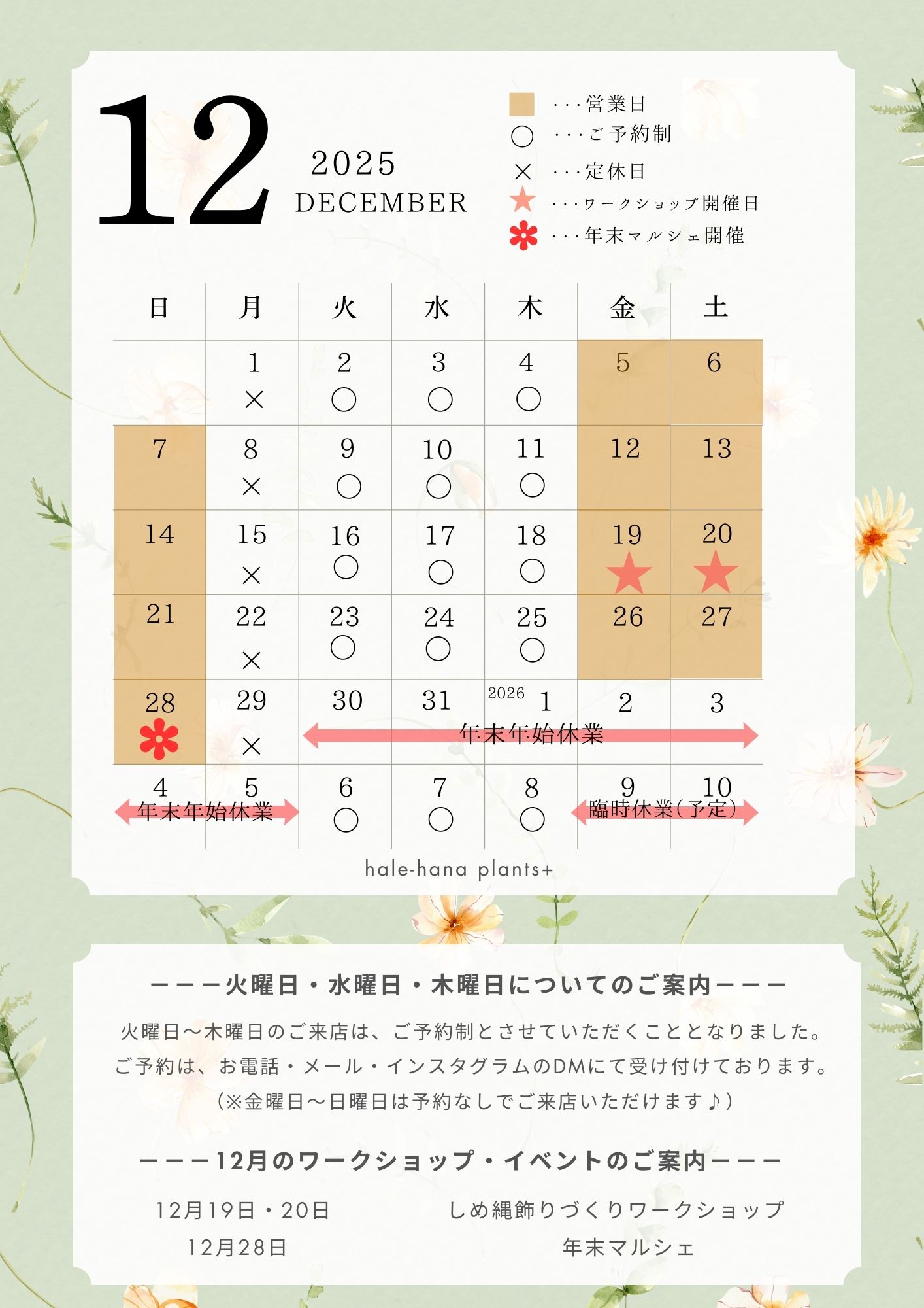 また、12/29(月)~1/5(月)までは、年末年始休業とさせていただきます。